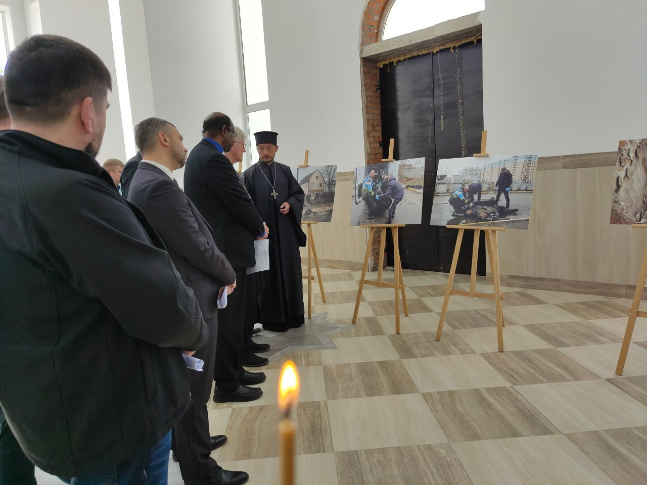 Представники ВРЦіРО разом із делегацією ВРЦ оглянули розташовану у храмі фотовиставку про звірства росіян у Бучі. Іноземних гостей шокувало побачене. Вони були одностайними у тому, що це злочини проти людяності.