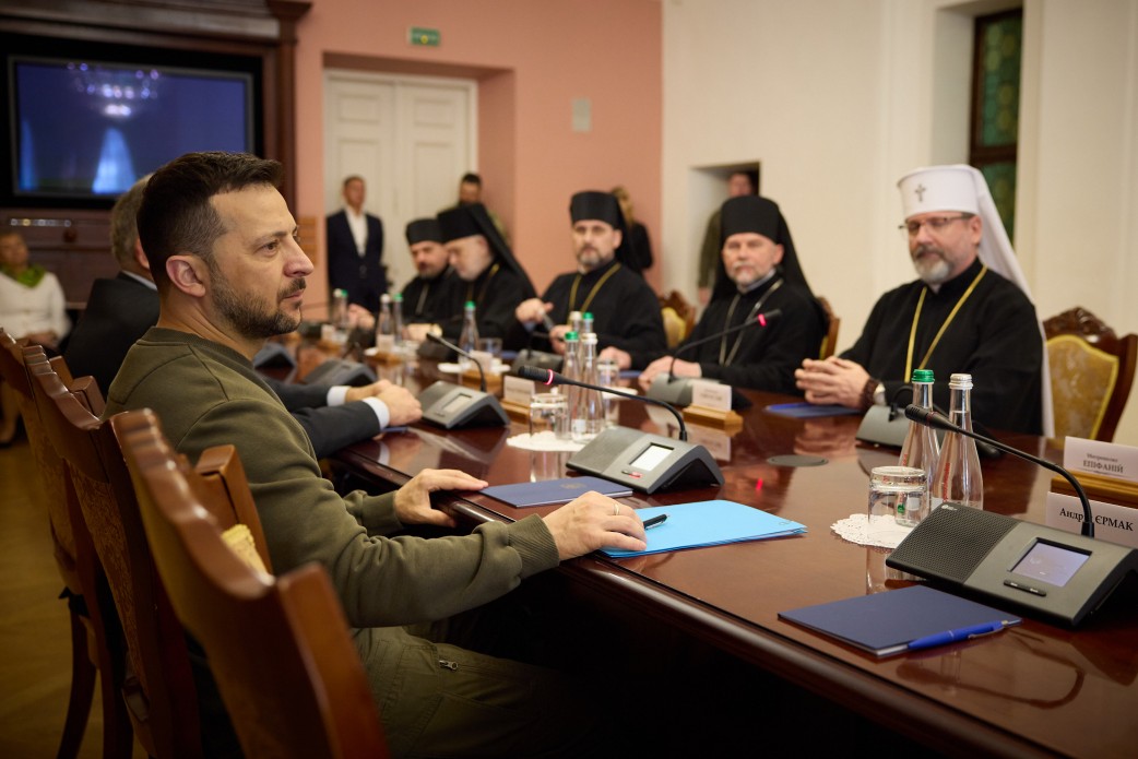 Президент Володимир Зеленський з нагоди Великодня зустрівся з представниками єпископату Православної церкви України й Української греко-католицької церкви.