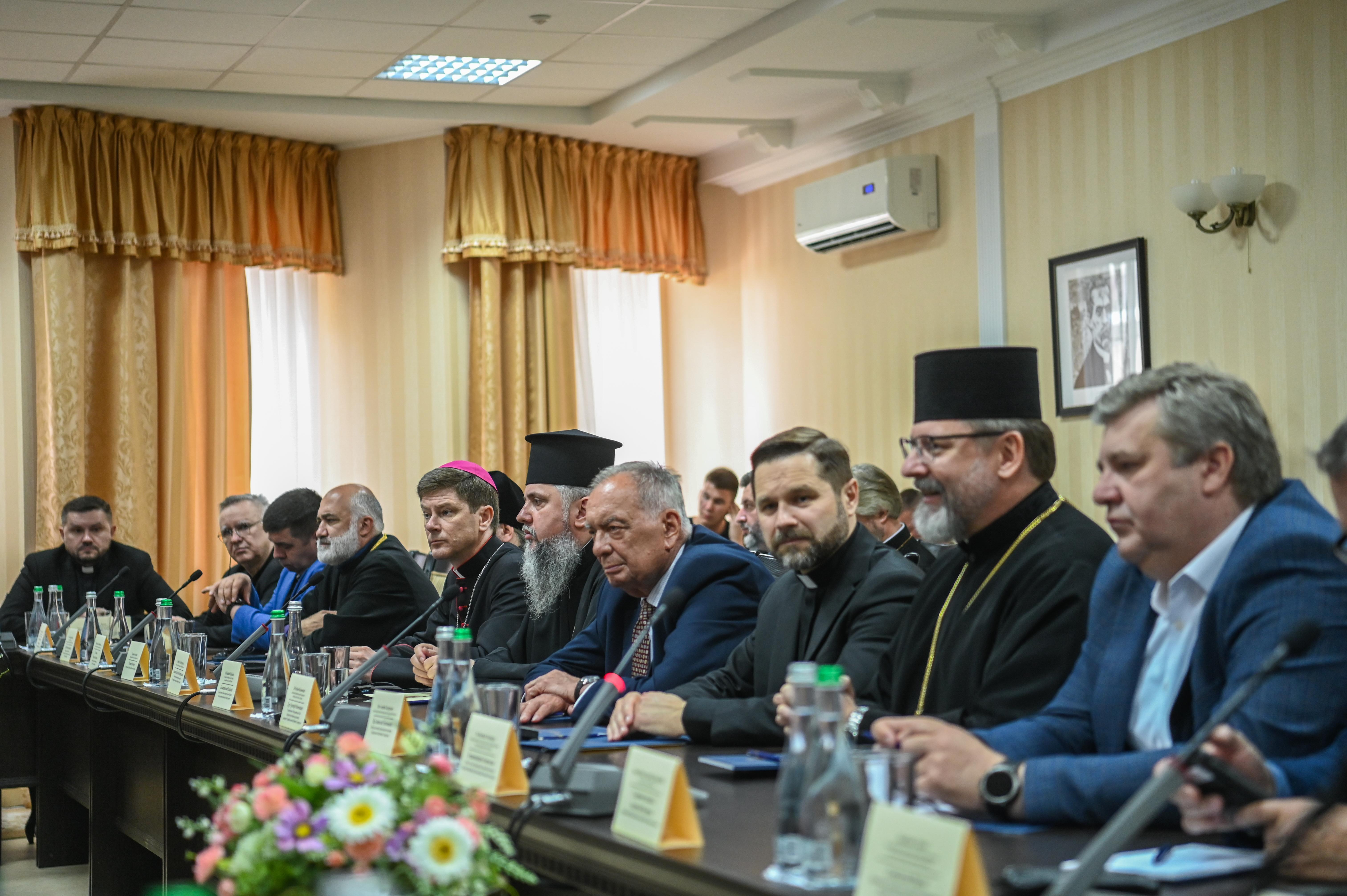 Глави й уповноважені представники конфесій розповіли послам «великої сімки» про злочини рф в релігійній сфері України, у тому числі, релігійних переслідуваннях на тимчасово окупованих територіях України, руйнування й пошкодження церковних будівель, тощо. Розмова також торкалася питань законодавчого забезпечення свободи віросповідання від ворожого іноземного втручання і від використання довіри до релігії як інструменту в гібридній агресії проти України.