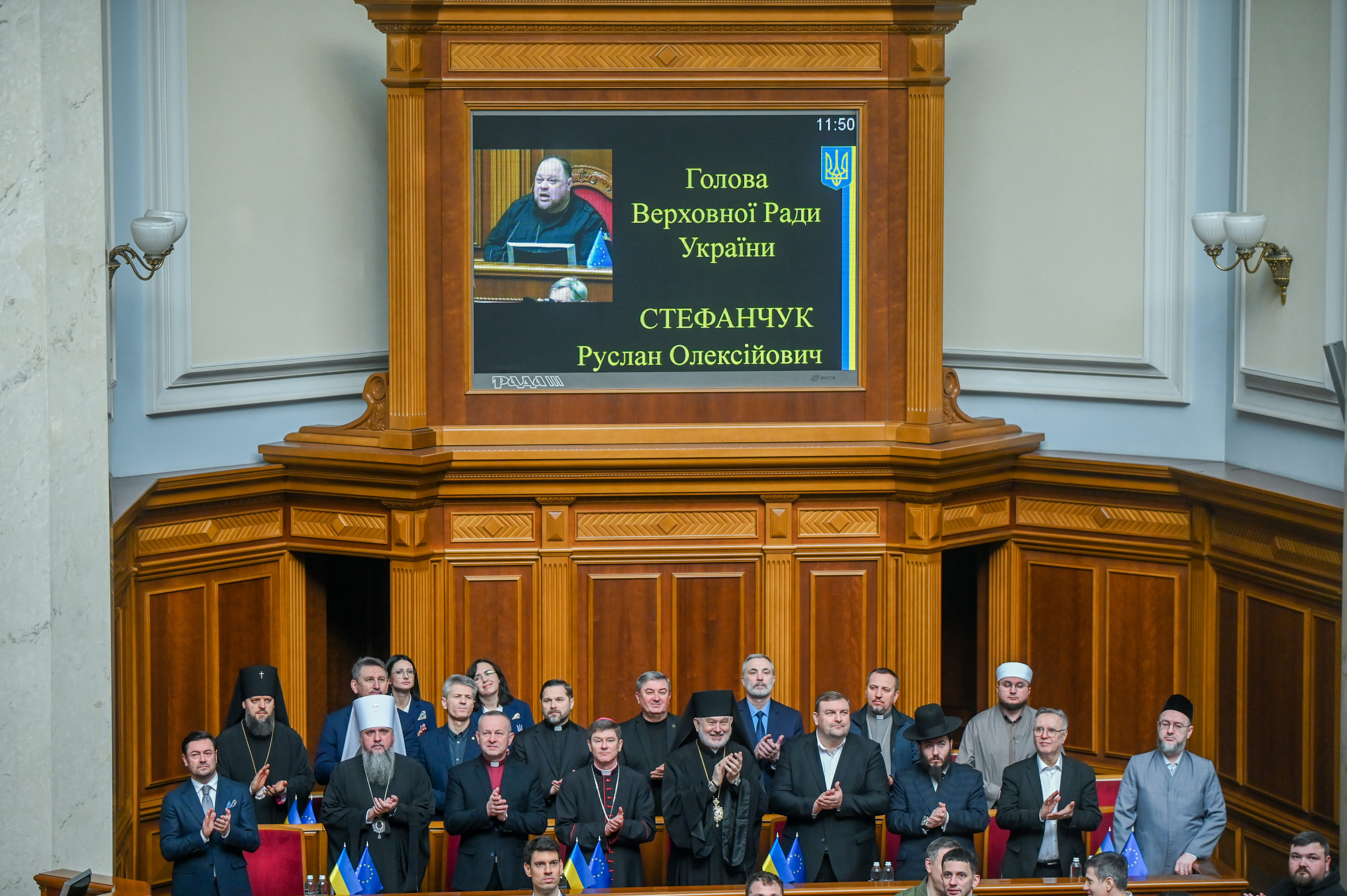 На початку засідання голова Верховної Ради України Руслан Стефанчук зазначив, що 12 лютого 2025 року Парламент встановив в Україні Національний день молитви, який відзначатиметься щорічно 24 лютого. Учасники та гості парламентського засідання спільно з хором виконали    духовний гімн України «Боже Великий, Єдиний».