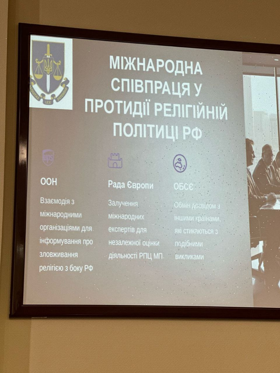 14 березня 2025 року в Київському національному університет імені Тараса Шевченка пройшла Міжнародна науково-практична конференція «Релігійна політика РФ як зброя гібридної війни: напрямки реалізації та механізми протидії», в якій взяли участь українські науковці, експерти, правозахисники, представники релігійних організацій, медіа та органів влади, гості з США, Великої Британії, Нідерландів, Франції і Бельгії. Організаторами конференції виступили Науково-дослідний інститут українознавства Київського національного університету імені Тараса Шевченка, Офіс Генерального прокурора України, Секретаріат Уповноваженого Верховної Ради України з прав людини, Державна служба з етнополітики і свободи совісті, Відділення релігієзнавства Інституту філософії імені Г.С. Сковороди НАН України та інші.