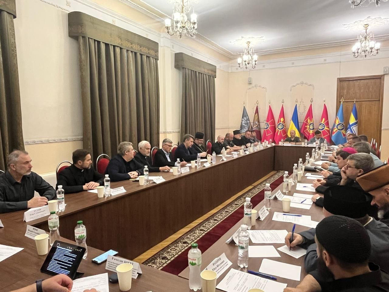 В зустрічі ВРЦіРО із Заступником Міністра оборони України генерал-лейтенантом Є.Мойсюком взяли участь: Головуючий у ВРЦіРО, голова ВСЦЄХБ, єпископ Валерій Антонюк, Верховний Архієпископ УГКЦ Святослав Шевчук, голова Синодального управління військового капеланства ПЦУ, митрополит Іоан (Яременко), єпископ РКЦ Віталій Кривицький, старший єпископ УЦХВЄ Анатолій Козачок, єпископ УЄЦ Олександр Зайцев, глава УЄ ВАЦ, єпископ Маркос Оганесян, Верховний муфтій Криму ДУМАРК Айдер Рустамов й інші представники церков і релігійних організацій, а також представники профільних управлінь Міністерства оборони України.
